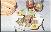 poignée d'olives verts,un piment frais, thon à l'huile,